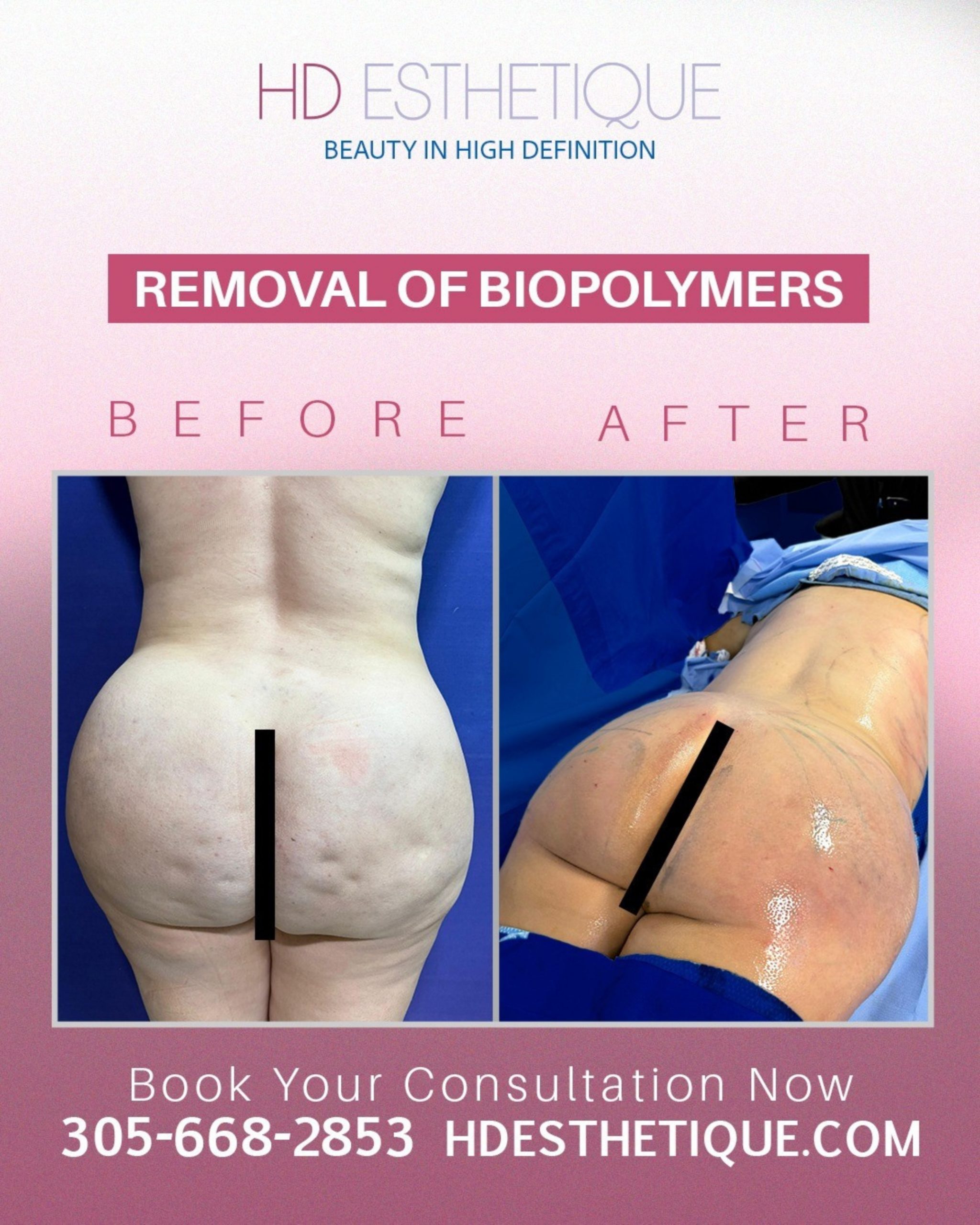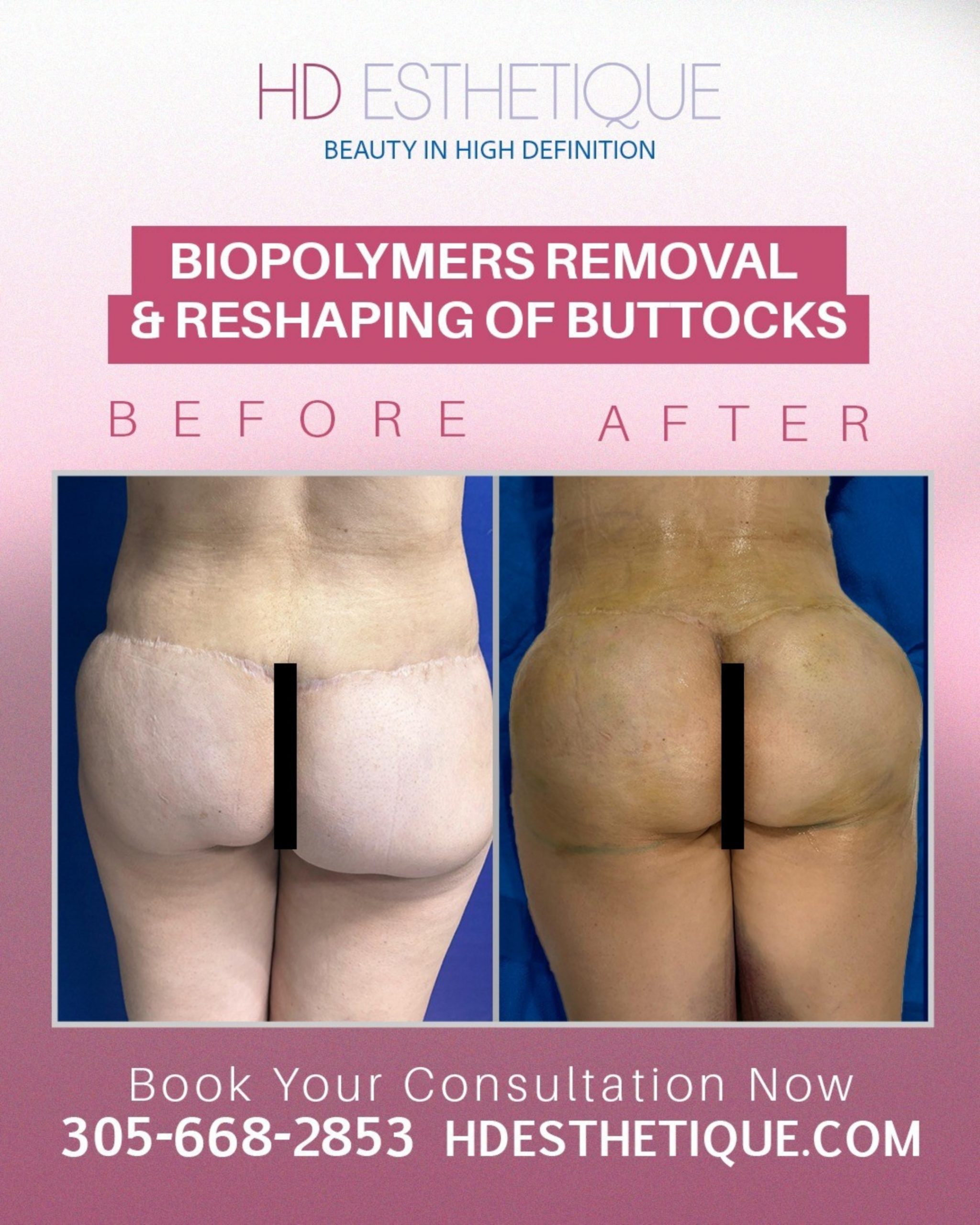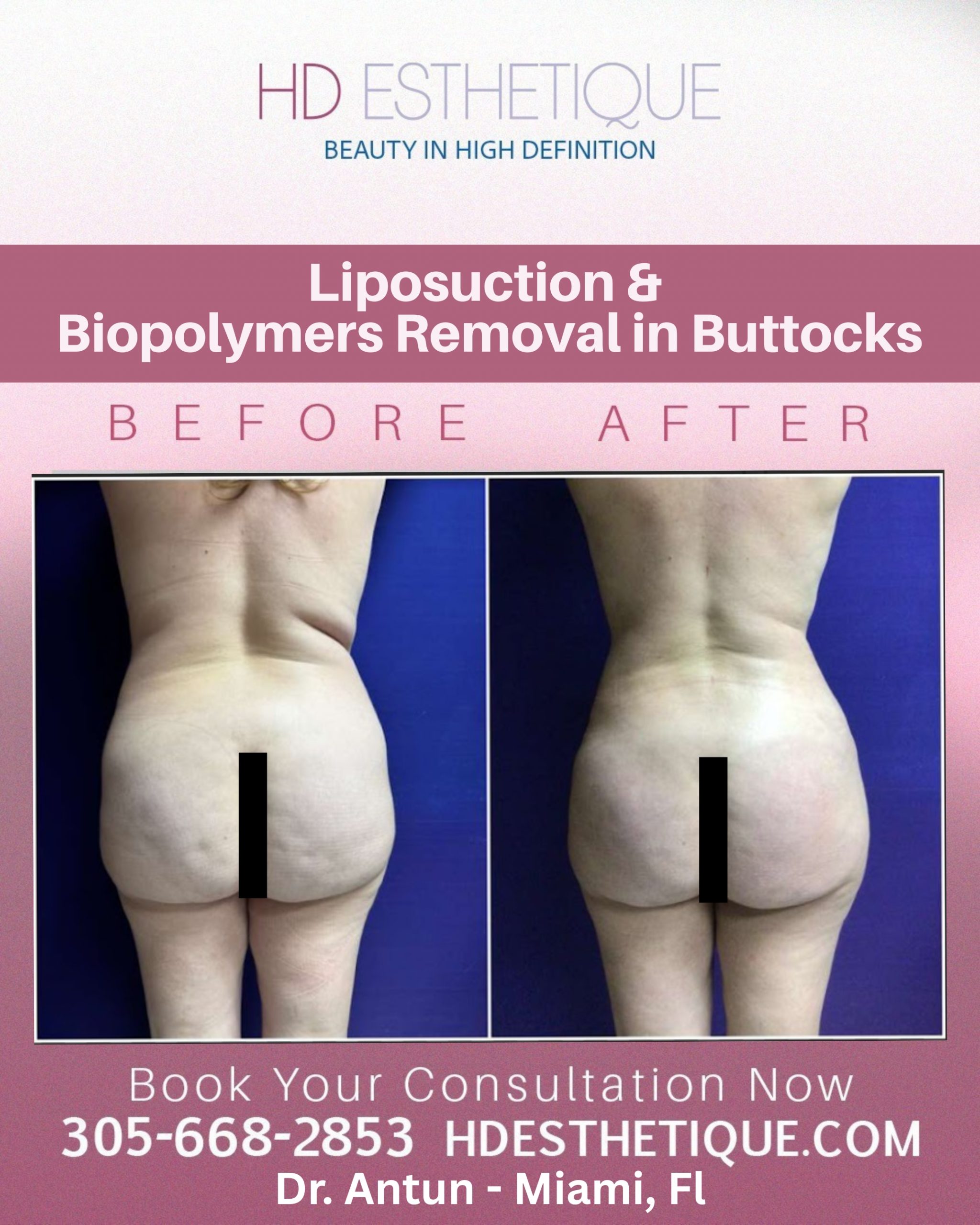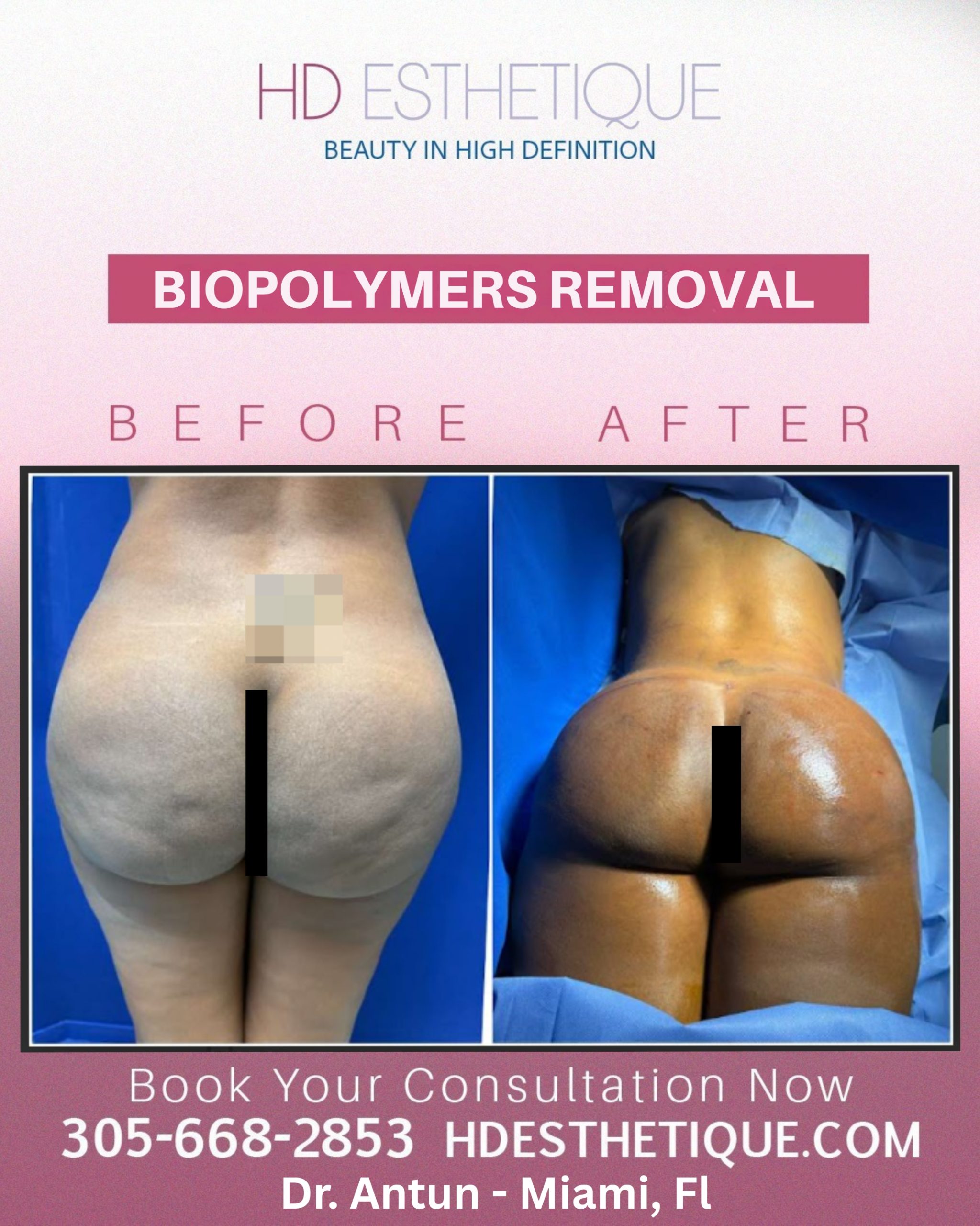Antes y Después de Paciente con Retiro Biopolímeros en los Gluteos