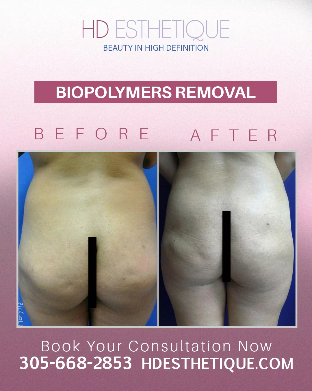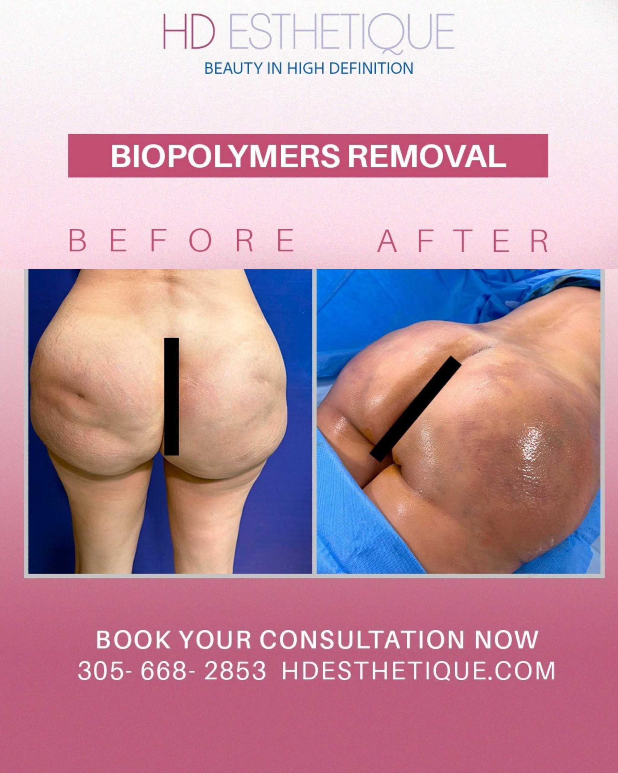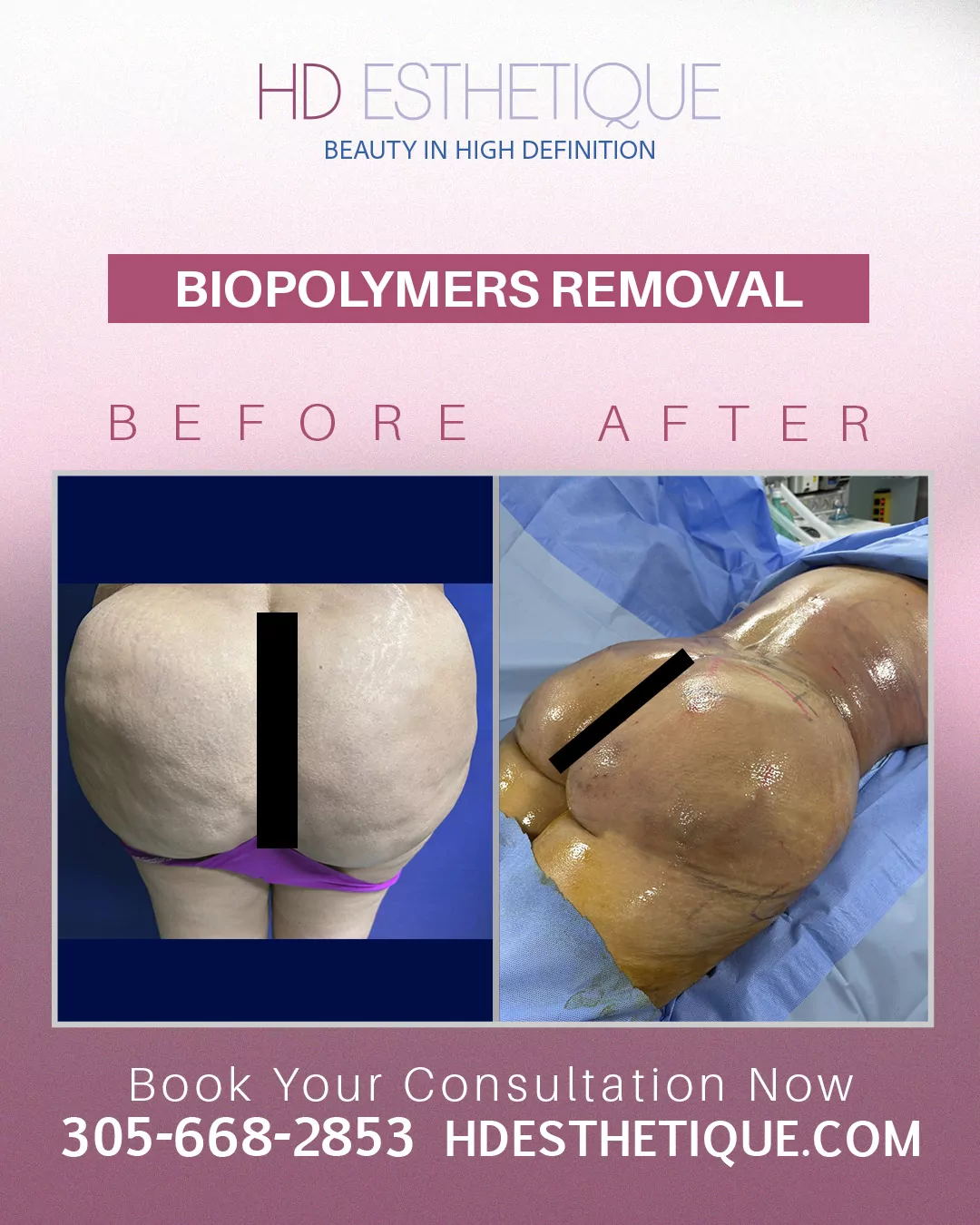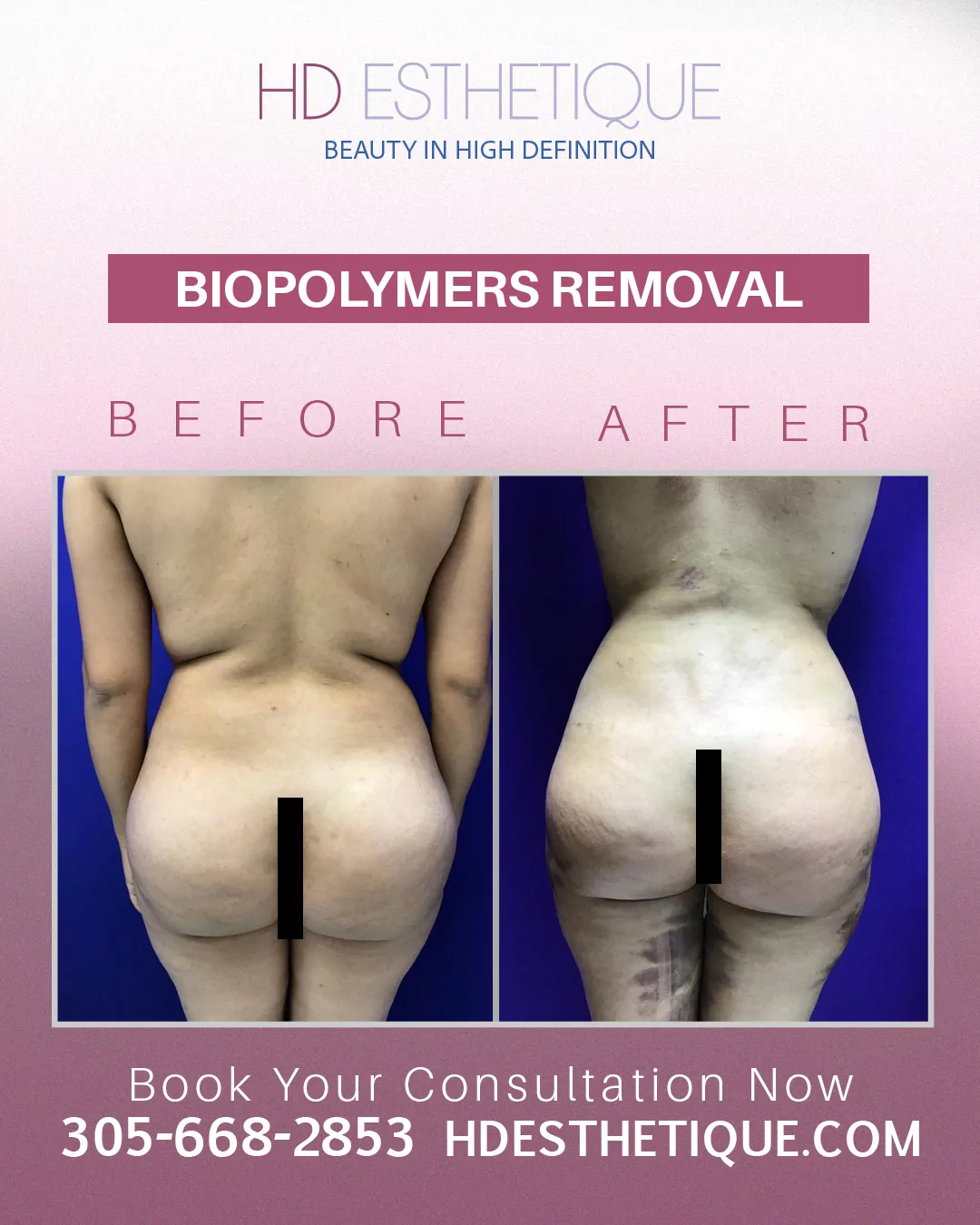 Antes y Después de Paciente con Retiro Biopolímeros en los Gluteos
