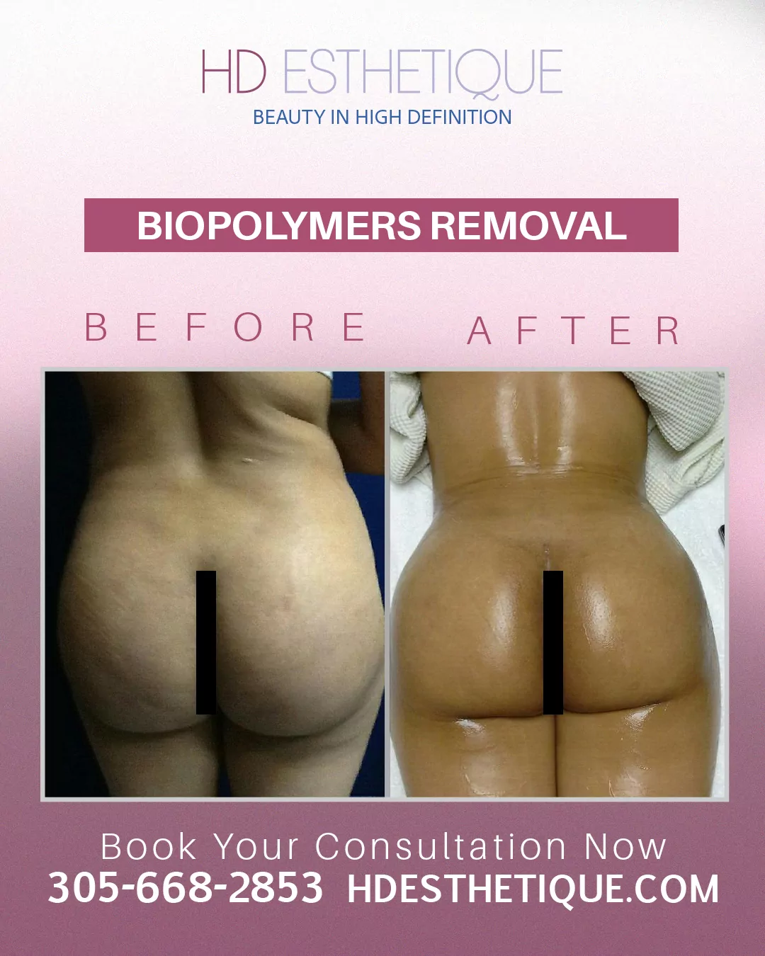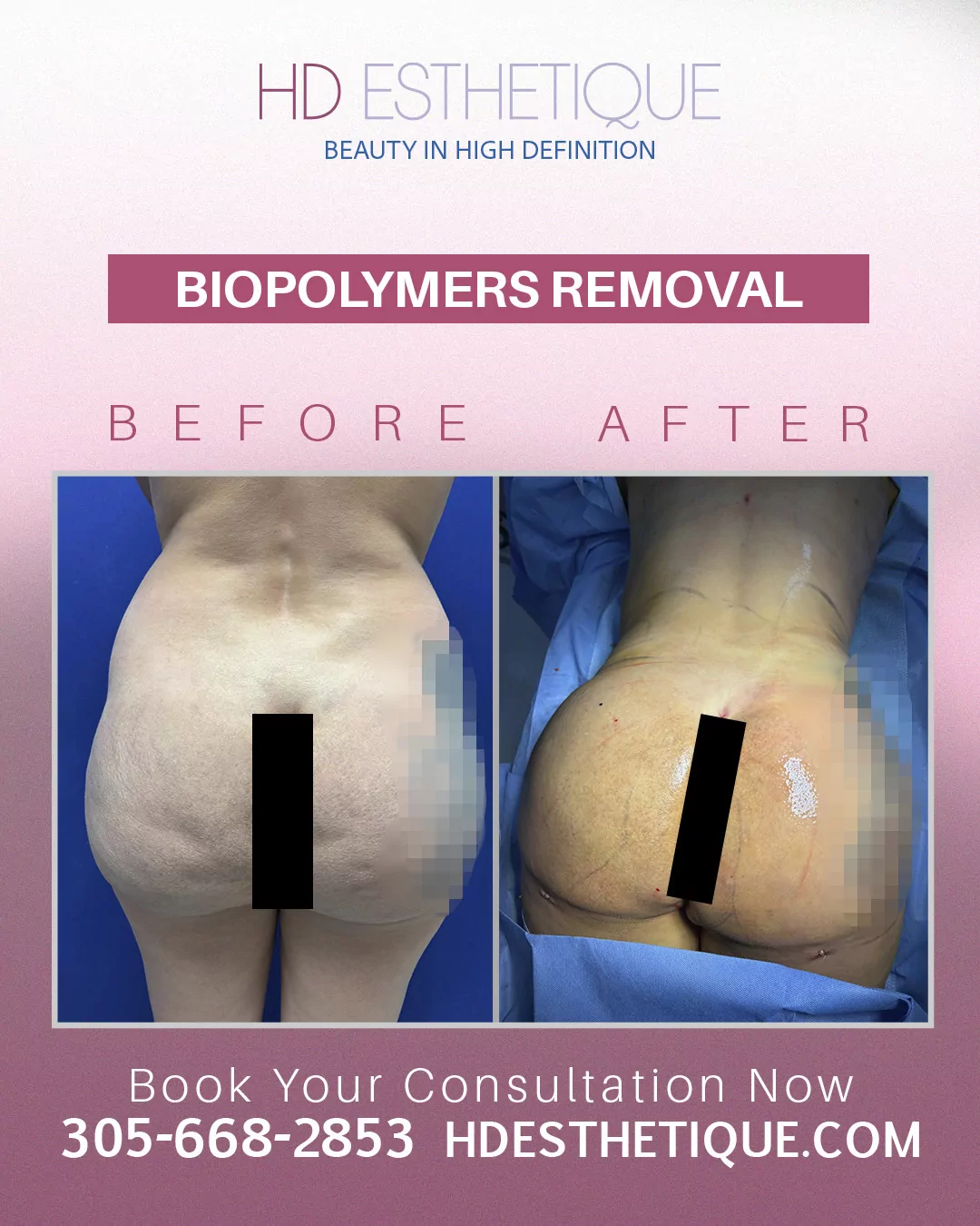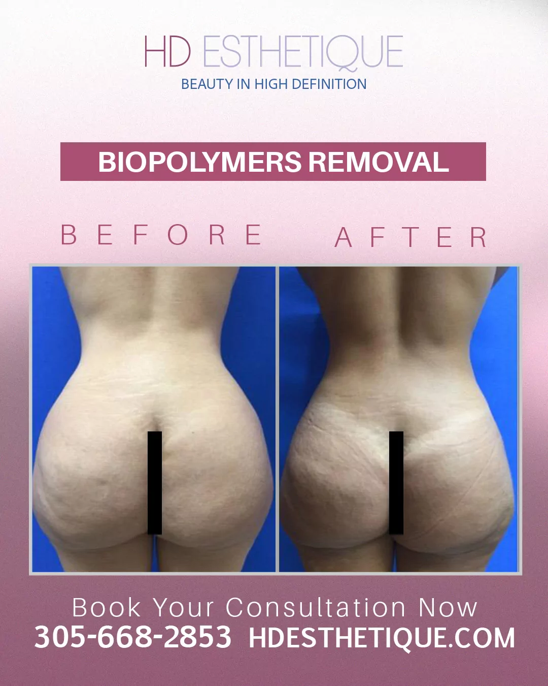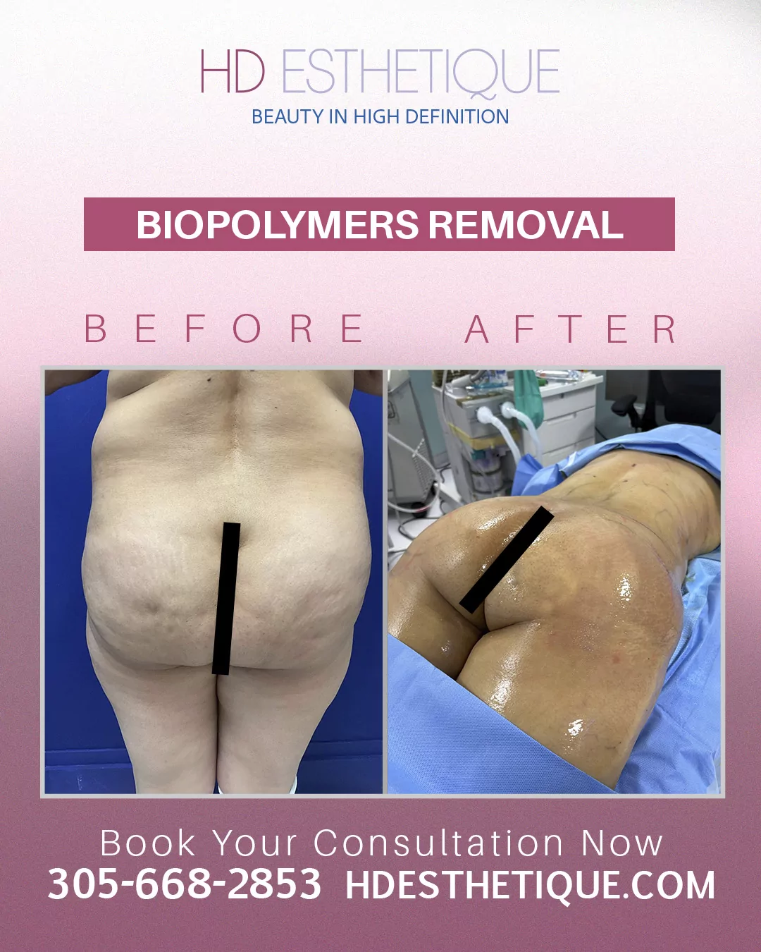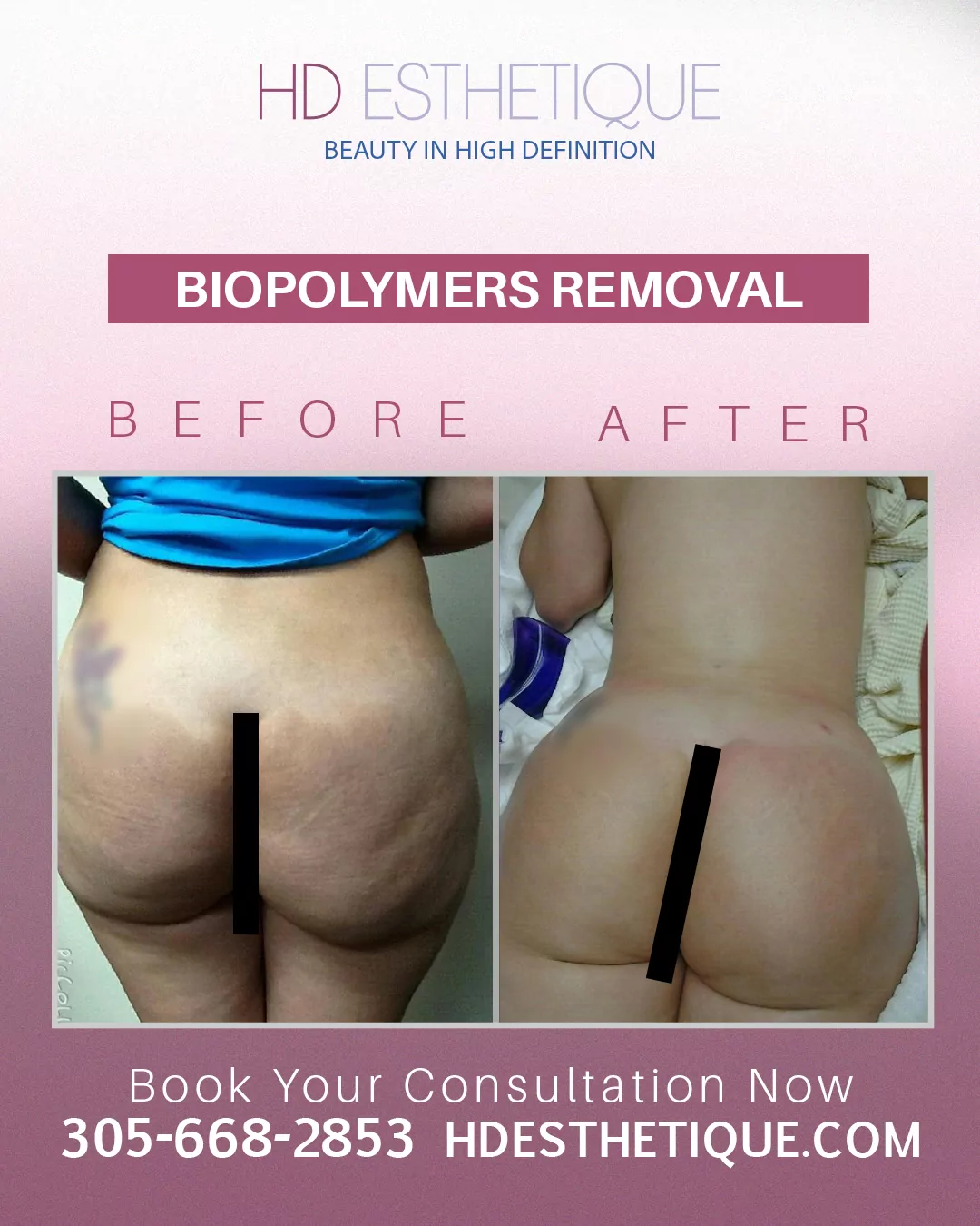Antes y Después de Paciente con Retiro Biopolímeros en los Gluteos