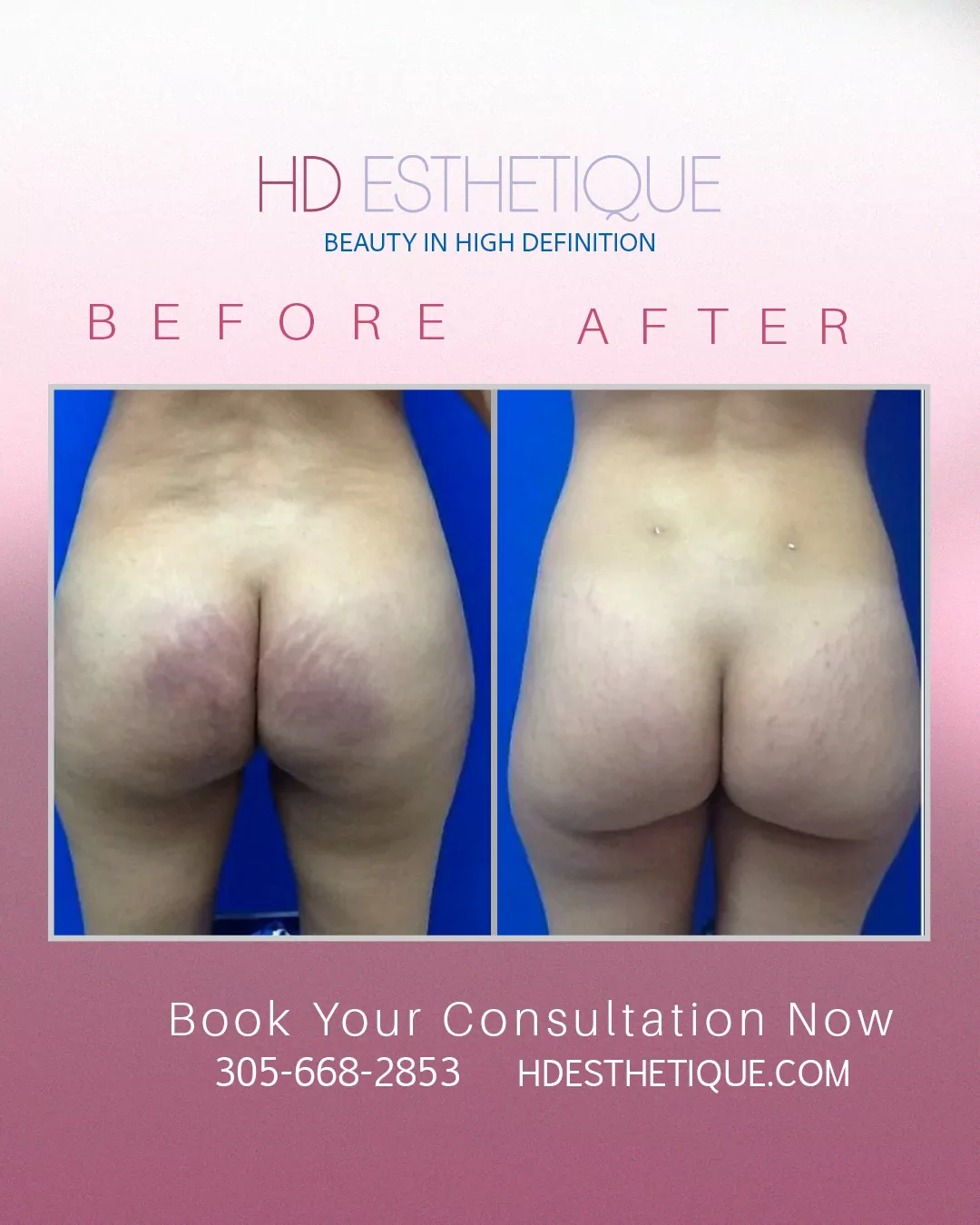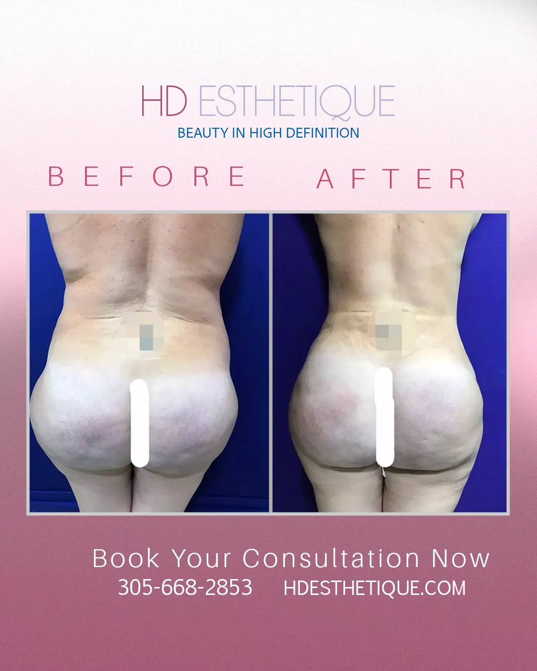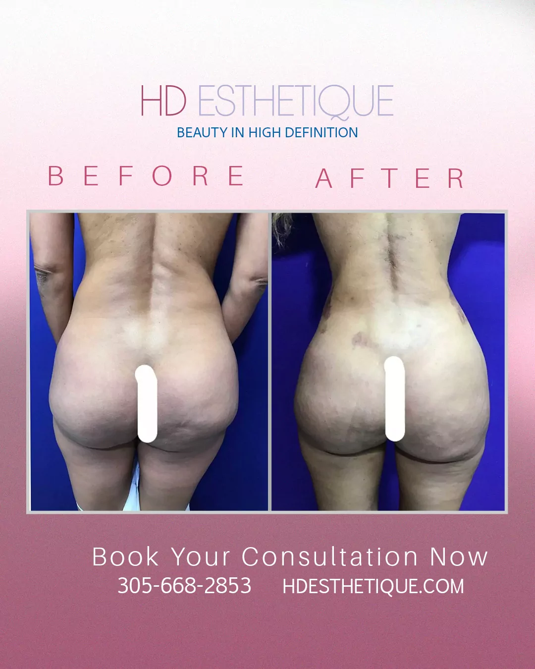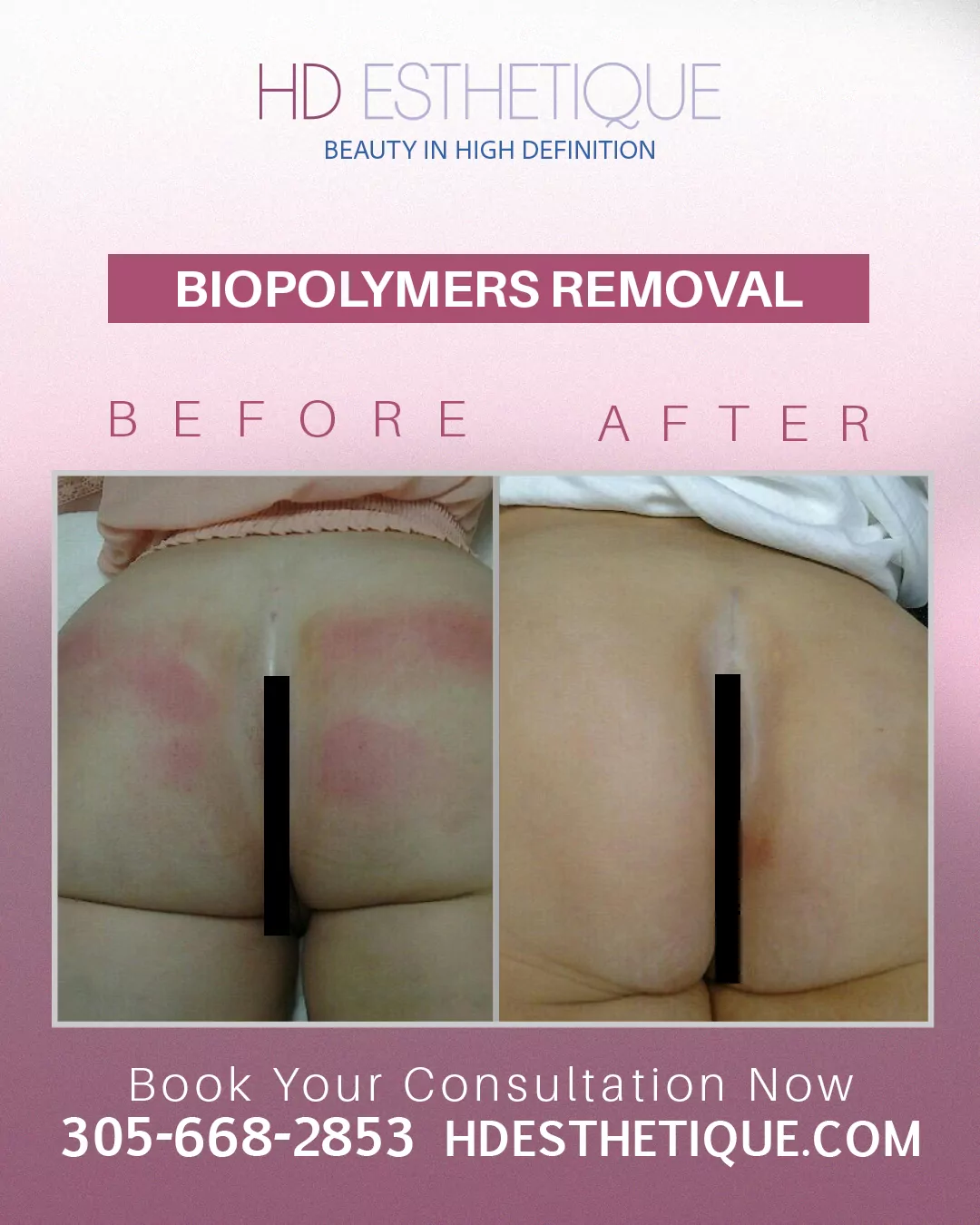 Antes y Después de Paciente con Retiro Biopolímeros en los Gluteos
