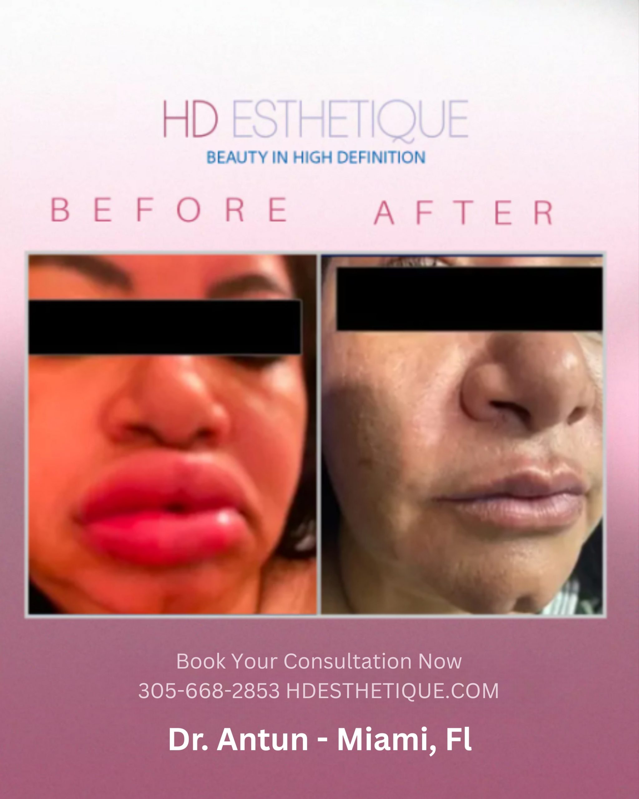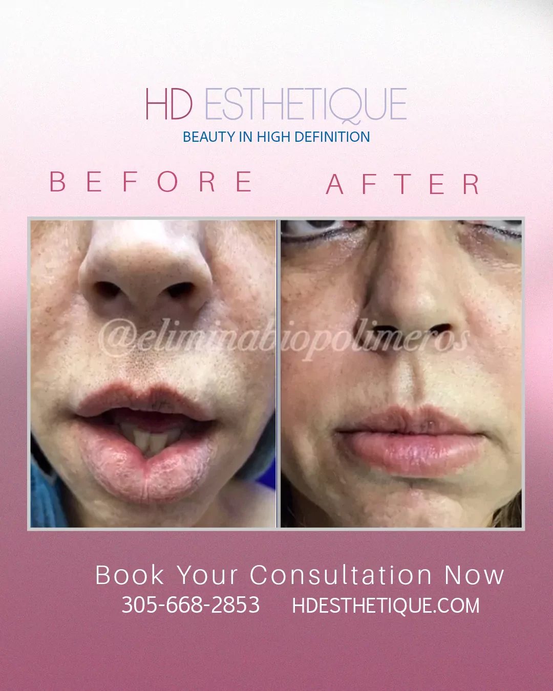 Antes y Después de Paciente con Retiro Biopolímeros en los Labios